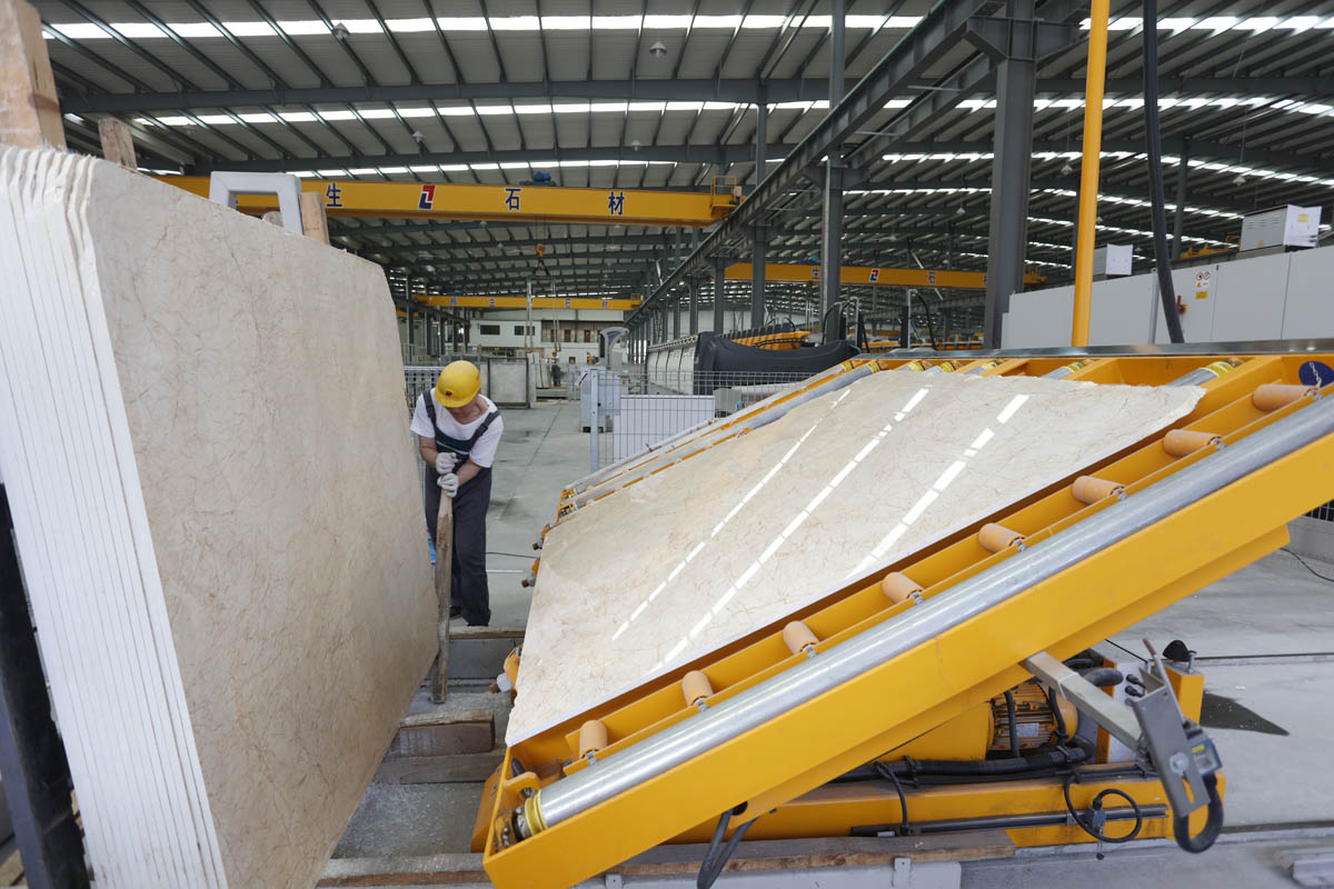 公司拥有全球顶级生产设备,设备自动化操作,节省大量人力和时间,产品经久耐用,有品质保障。8台进口大理石排锯,6台进口大理石抛光机,3条进口大理石烘干线,以及全国第1台进口花岗岩绳锯。高精密的进口大理石排锯加工稳定,锯切薄板效果更有优势,平整,无弧度,无锯痕。板材在磨机抛光时不会被抛盘压裂,产品经久耐用。我们始终不断的在追求更高品质的大理石生产加工技术,这种对于高品质追求的执着信念在我们心中始终不变。您在振生购买的不仅仅是一份产品,更是一份放心和省心.